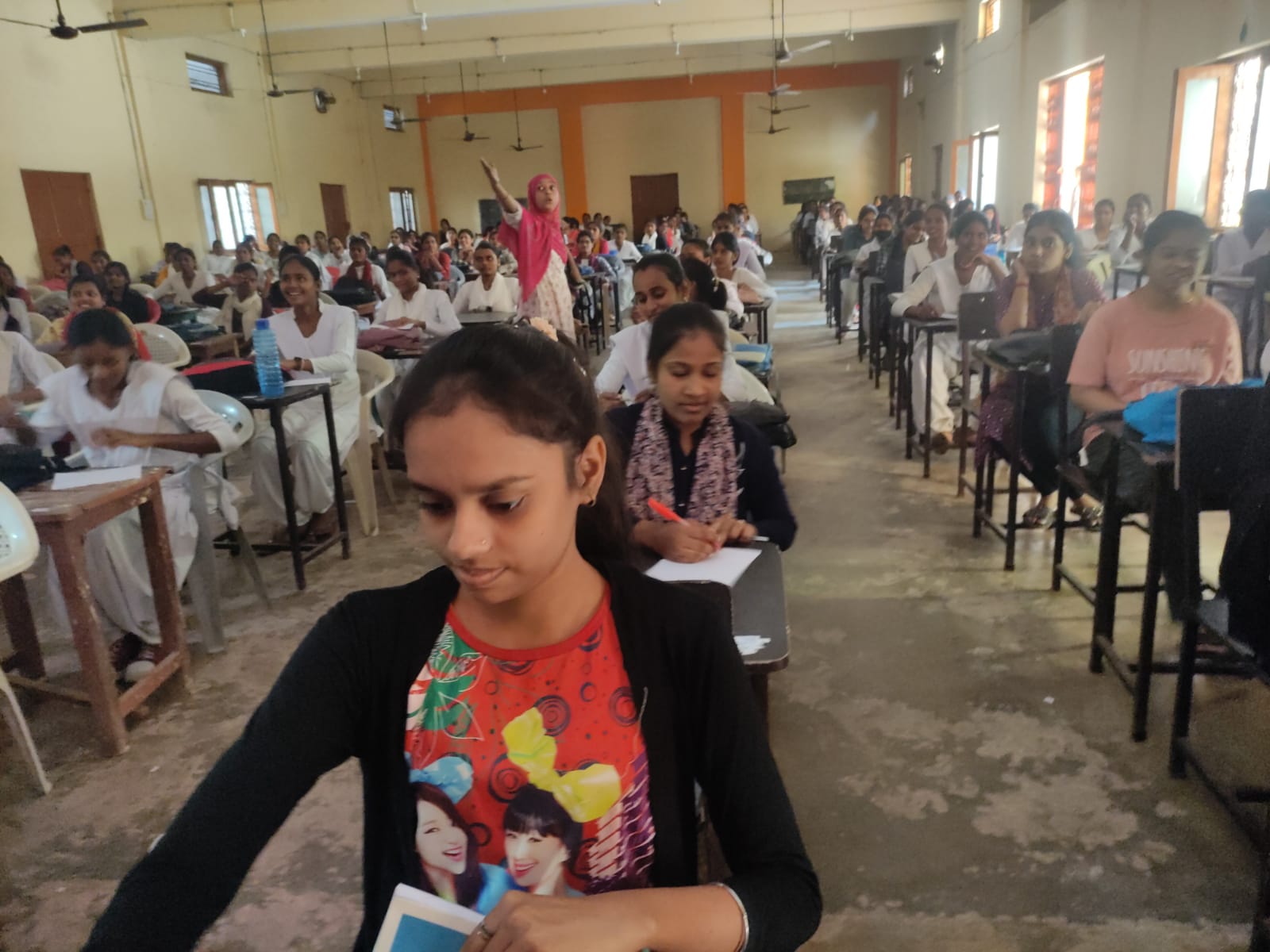 आज सर्वप्रथम छात्राओं को "आशु हिन्दी अल्फाबेट लेखन" की प्रतियोगिता के माध्यम से परखा गया जिसमें श्री अग्रसेन महिला महाविद्यालय आज़मगढ़ की तक़रीबन 200/ छात्राओं ने भागीदारी की |