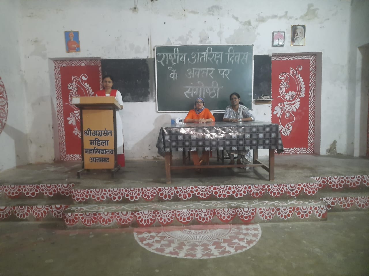 आज दिनांक 23.08.2024 को राष्ट्रीय अंतरिक्ष दिवस के अवसर पर श्री अग्रसेन महिला महाविद्यालय के B.Ed. विभाग में संगोष्ठी का आयोजन किया गया । कार्यक्रम की संयोजिका डॉ0 माहेजबीं और सह-संयोजिका श्रीमती रागनी गौतम ने संगोष्ठी का सफल आयोजन किया। छात्रों ने अंतरिक्ष दिवस के अवसर पर अपने विचार प्रस्तुत कर संगोष्ठी को सफल बनाया। इस अवसर पर प्राचार्य प्रोफेसर जूही शुक्ला मैडम ने छात्राओं को अपना आशीष दिया।